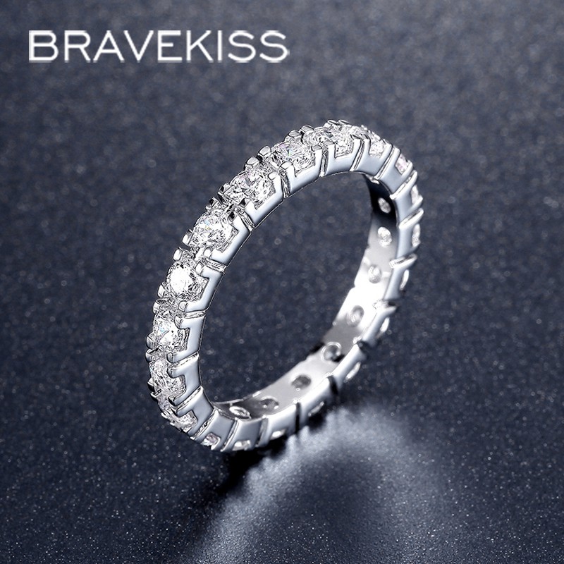 Bravekiss Hot Eternity Rings Women Jewelry White Gold Color Round Cz Diamond Wedding Bands Ur0357