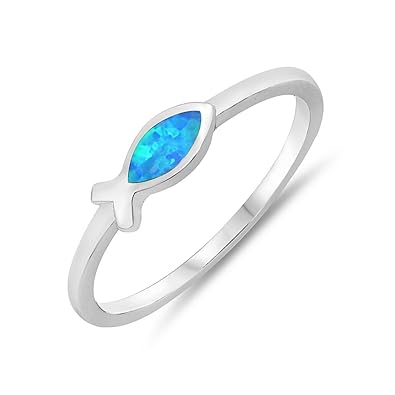 Amazon Com Christian Symbol Fish Ichthus Ring Lab Created