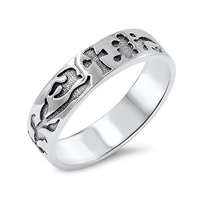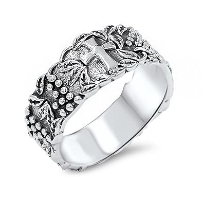 7mm Mens Christians Symbol Cross Grapes With Vines Ring 925