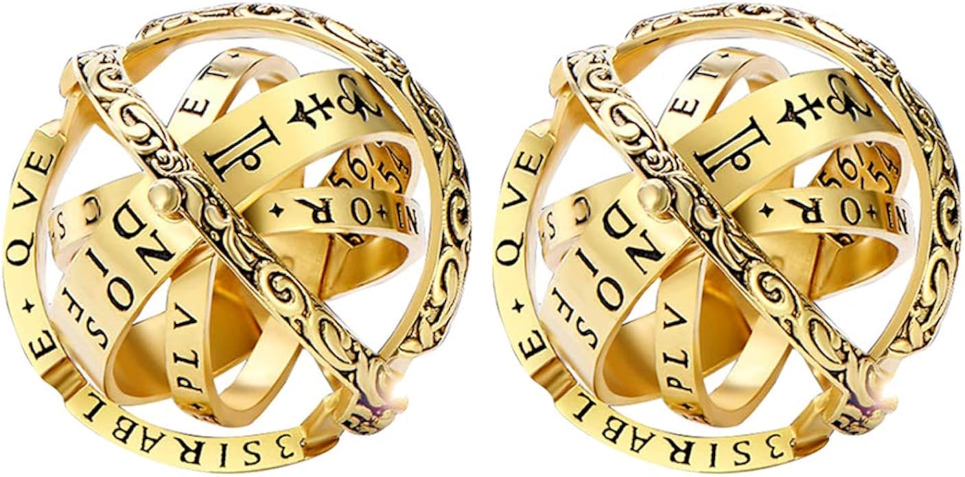 2 Astronomical Sphere Foldable Ball Ring Rotatable Cosmic Finger Ring 16th Century Germany Retro Vintage Couple Rings Couple Lover Gift Jewelry