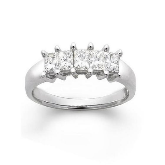 5 Stone Princess Diamond Wedding Band For Her In White Gold