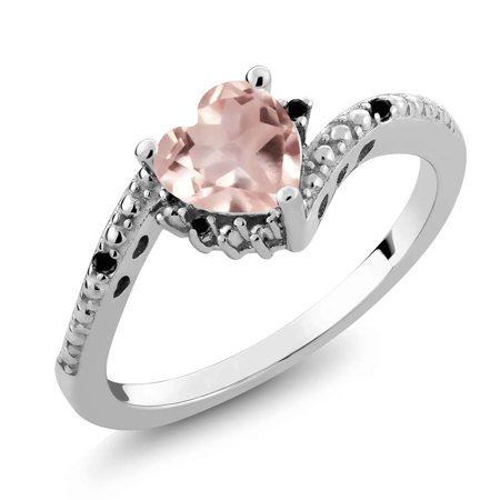 0 73 Ct Heart Shape Rose Rose Quartz Black Diamond 18k White Gold Ring